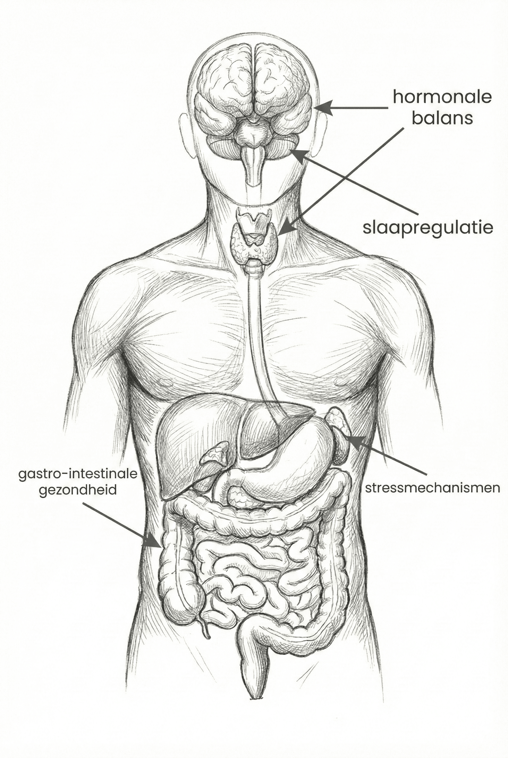 Dit ondersteunt fysiologische herstelprocessen, versterkt de immunologische functie en vermindert de kans op klachten, wat bijdraagt aan verbeterde vitaliteit en algehele gezondheid.